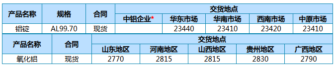 中铝股份公司主要产品3月23日现货报价