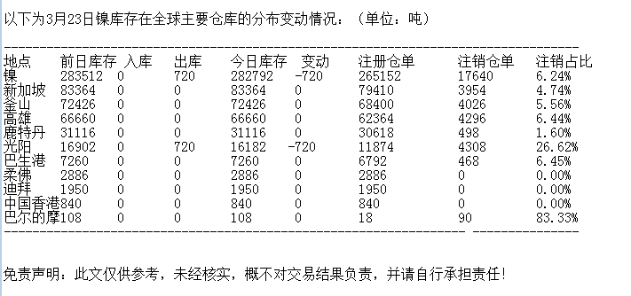 LME 3月23日镍库存分布情况