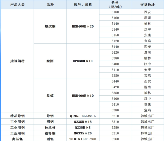 4月16日陕钢集团钢材直销价格信息