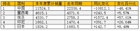 表:美国大豆的前10大买家,单位1000吨