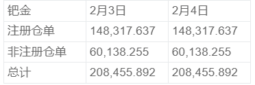 NYMEX2月4日钯金库存统计